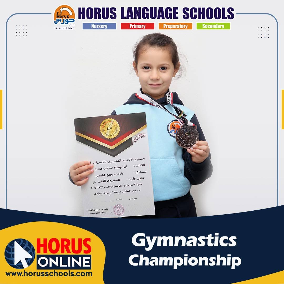 Horus Language Schools Administration congratulates “Lara Wessam ” KG 2 A for winning the third place in the Egyptian Cup of Gymnastics Championship