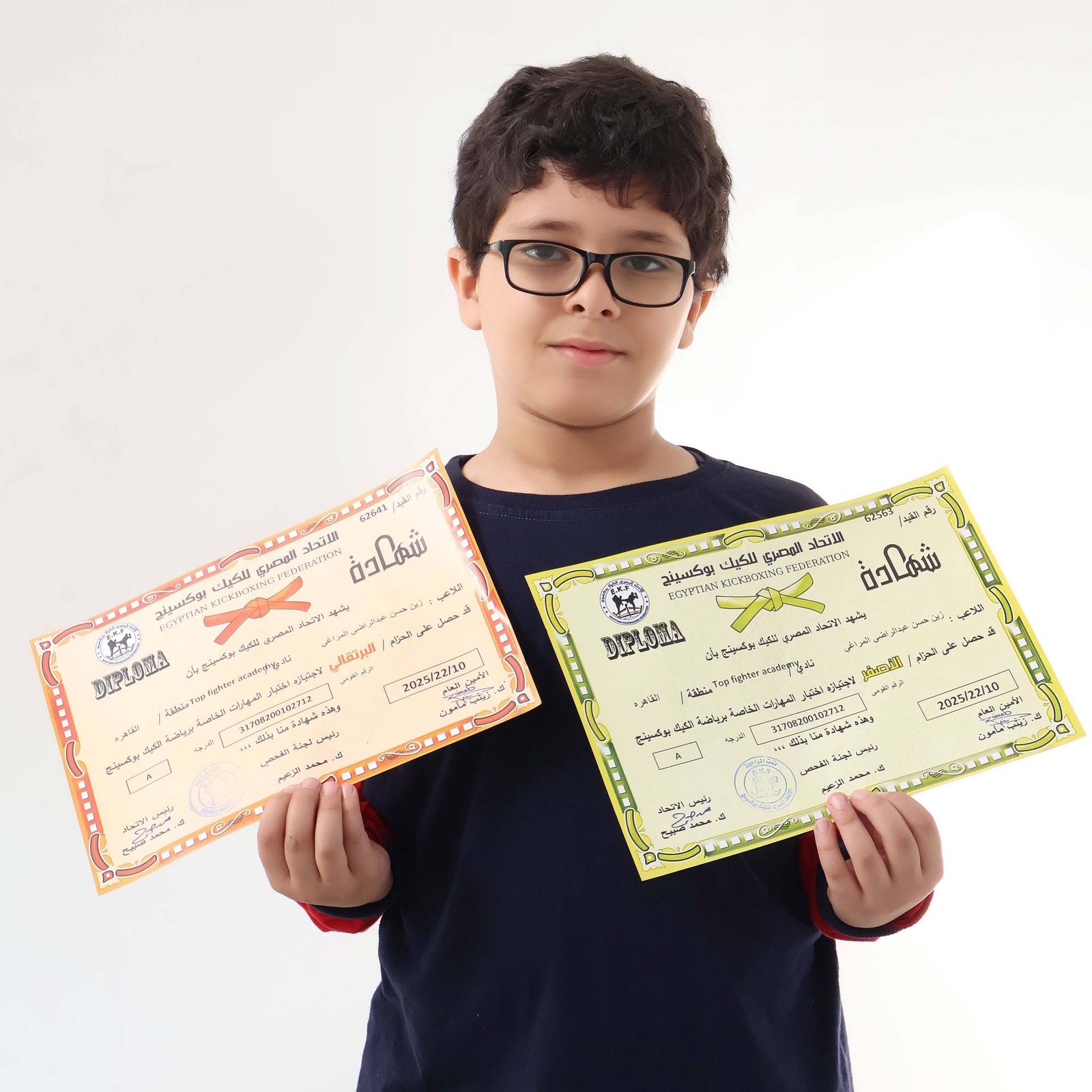 For winning the Yellow and Orange belt from the Egyptian Kickboxing Federation.