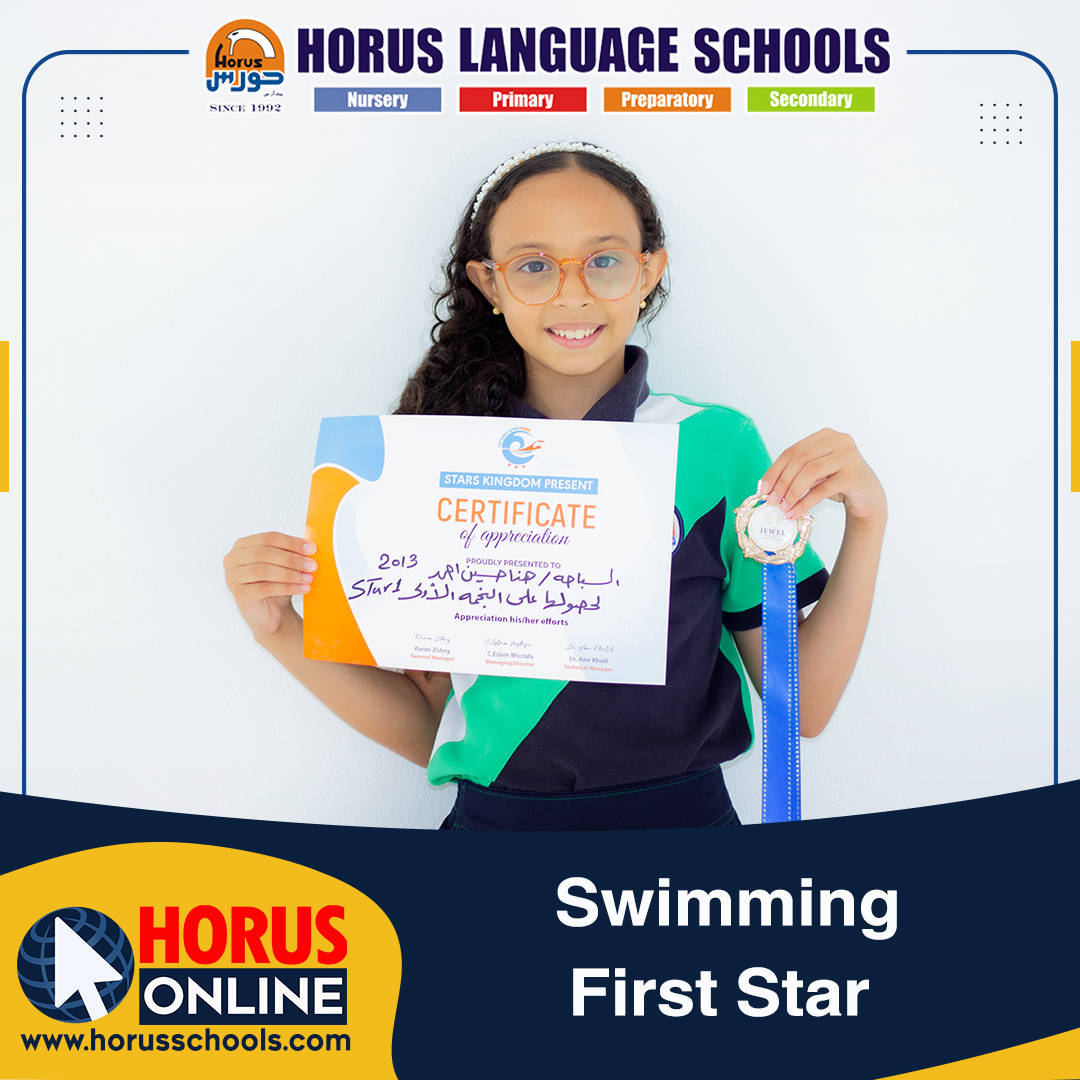 Horus language schools congratulate "Hana Hussein 5C" for winning the first star from the Egyptian swimming federation.