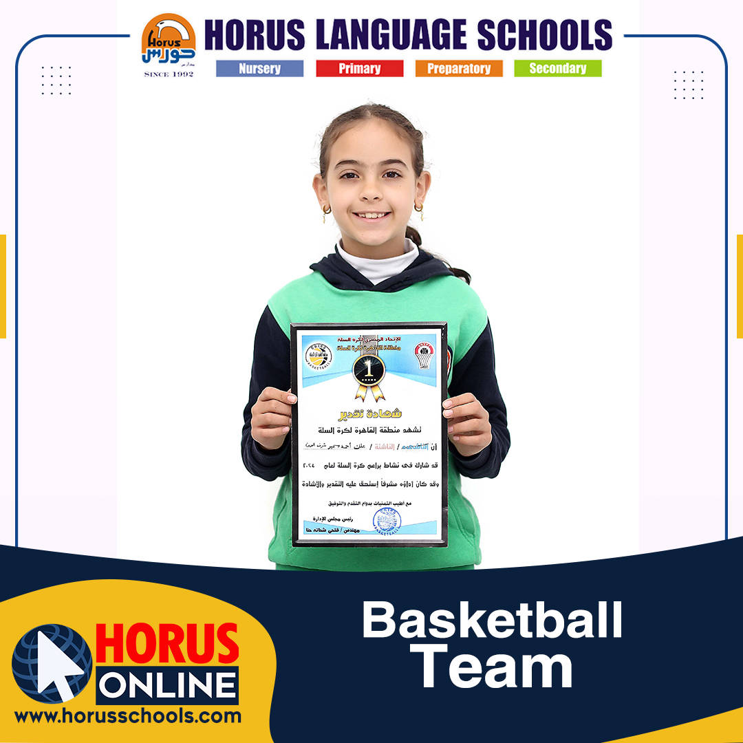 Horus language Schools administration congratulates “Malak Ahmed 3rd primary C ” for her active participation in the Basketball team.