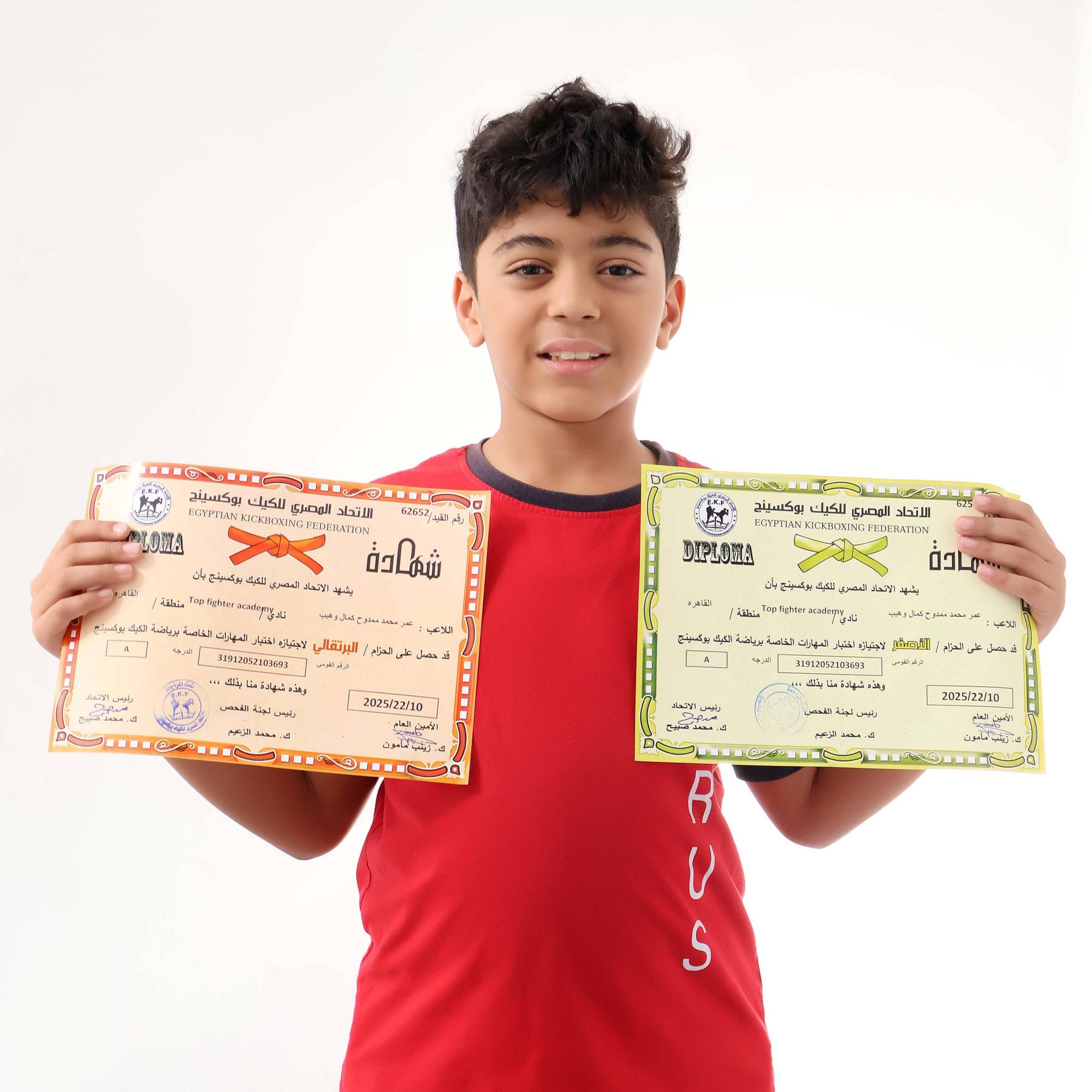 For winning the Yellow and Orange belt from the Egyptian Kickboxing Federation.