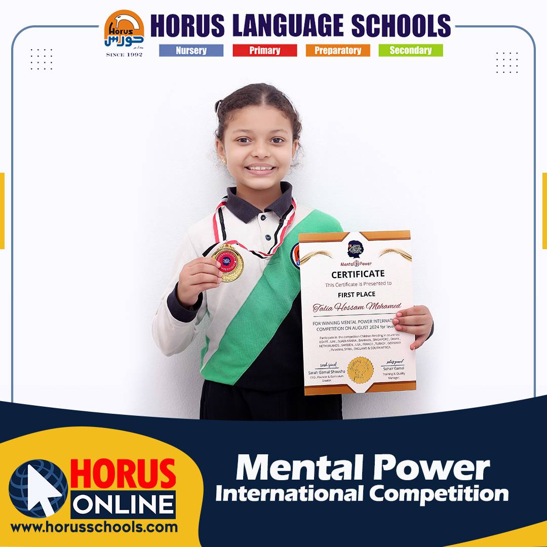 Horus Language schools administration congratulates “Talia Hossam ” 3rd primary D for winning Mental Power International Competition .