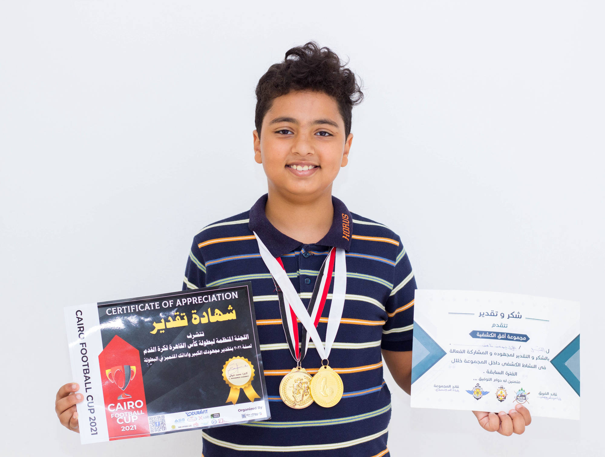 حصل الطلاب بلال يوسف ورودينا يوسف على العديد من الشهادات فى البطولات الرياضية فحصل لاعب كرة القدم بلال يوسف