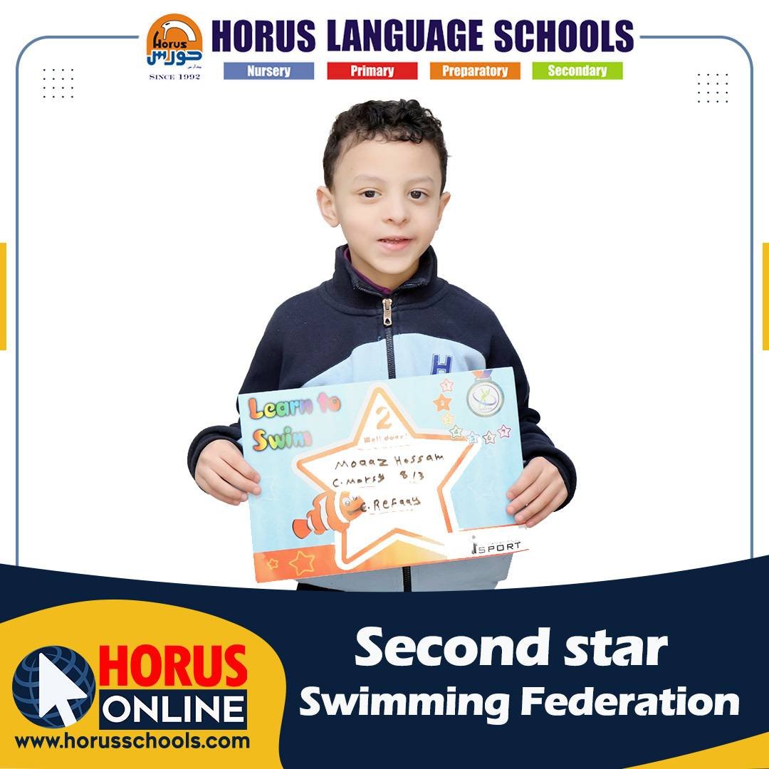 Horus Language Schools Administration congratulates “Moaz Hossam” KG 1 (C) for winning Second Star in Swimming.